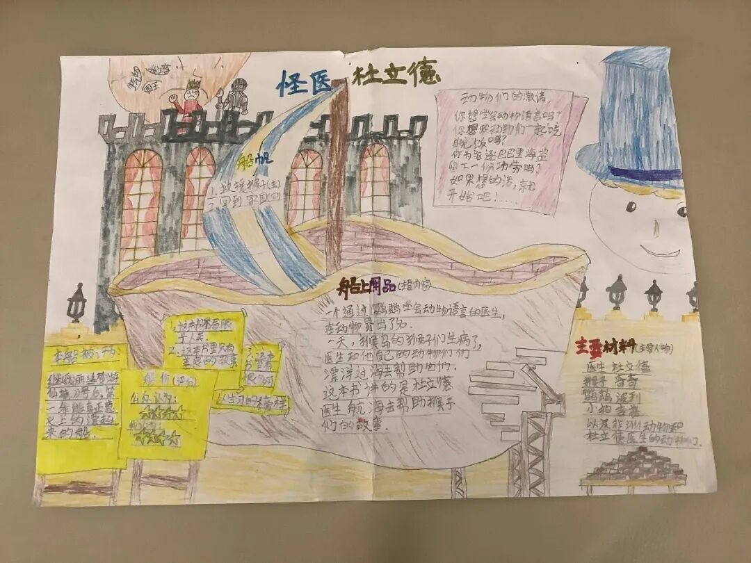 如果没有教学与指导,这种工作往往会成为家长的恶梦,但因为有了层层铺垫的讨论与初版草稿反馈,孩子们自己深度沉浸在创作的幸福感中。到底是因为做海报而读书,还是因为读书而做海报?已然浑然一体,输入与输出彼此激发。