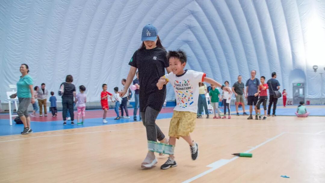 在运动会的整体设计中,处处都体现了竞技与趣味之间的融合与平衡。竞技性的50米折返跑、100米接力、蹲起跳、跳绳,跳远和踩气球大赛、小脚踩大脚、撕名牌、指压板运送乒乓球等趣味游戏相得映彰,还有专门针对低龄小朋友的踢球、搭建、以及拔河等团队协作类游戏,都让孩子们在竞争中同时充分感受运动有趣。而一些规则的设计,比如每一个孩子都必须至少完成两项竞技类的项目和六项趣味性项目才能去换取礼品等,都在无形中鼓励孩子们的全情投入和参与。