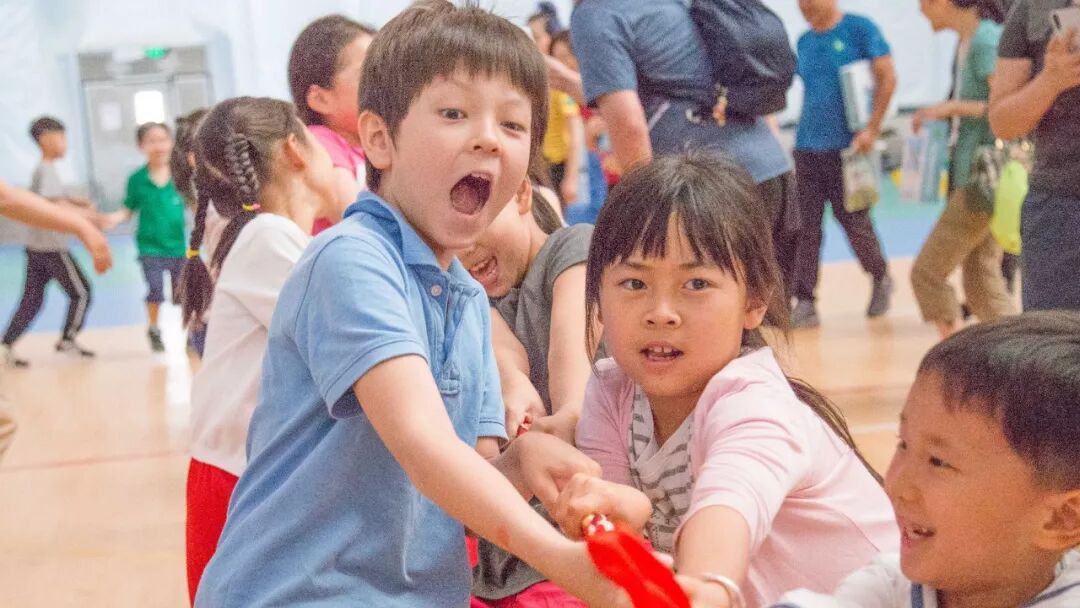 如果只说这是给孩子们准备的运动会还不够准确,从设计到开展,运动会处处都体现着“每一个人都是主角”的氛围。游戏项目中,还加入了许多亲子的元素,孩子和家长齐心协力,一起完成每一个挑战;老师们作为每个竞技项目点和游戏点的引导者和组织者,也不失时机地参与其中,将自己变成了孩子,充分享受着运动带来的乐趣;而拔河比赛中的家长与学校团队的较量,最终将运动会的氛围带入高潮。“整个运动会,家长和孩子都能投入进去,我自己特别嗨,超级开心。”一位一年级家长毫不讳言地说。