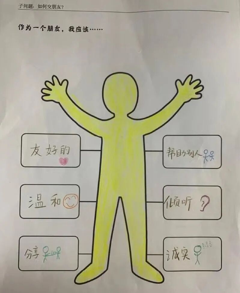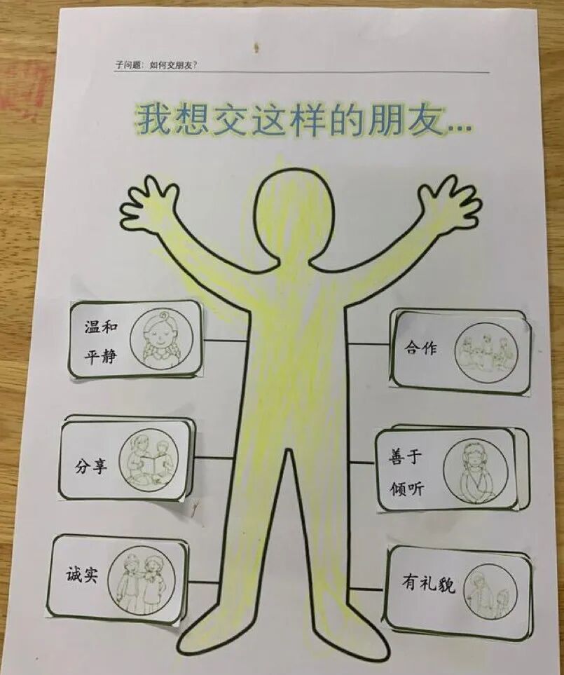 是的,在你交朋友之前,想一想,自己作为朋友,应该有什么特点,别人才愿意跟你交朋友呢?于是孩子们完成了“作为朋友,我应该……”的小任务。