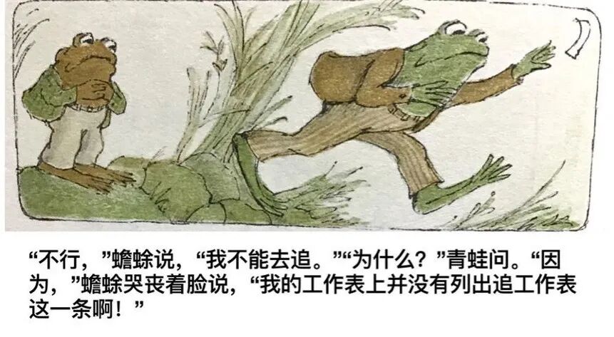 每次读蟾蜍和青蛙的故事的时候,教室里都弥漫着融融的暖意,小土豆们会为他们在书中新交的朋友想办法:蟾蜍一本正经地列“工作表”,划掉一项又一项任务而佩服,但当他丢失工作表就不知道该做什么了,又会让大家哈哈大笑,“这也有点儿死板吧!”