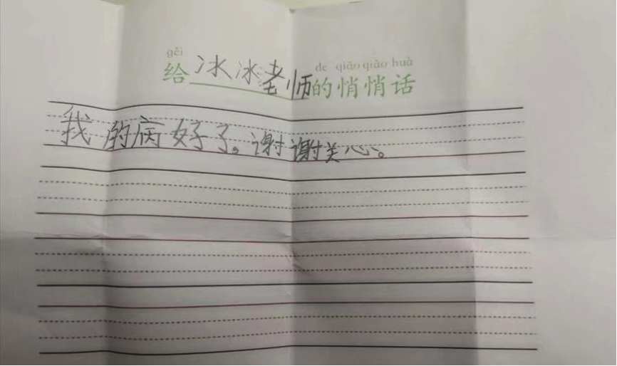 我经过允许看到了几封信:有直白表达爱意的,有花式夸赞的,有聊家常儿的,也有煞有介事给出“热反馈”的。老师也学起孩子们,有什么冷热反馈不在其他人面前给评论,而在私下悄悄“寄”给他。拆开信纸的一刹那,孩子会心:这是我们之间的小秘密,就悄悄化在我们心里、显在行动中好啦!