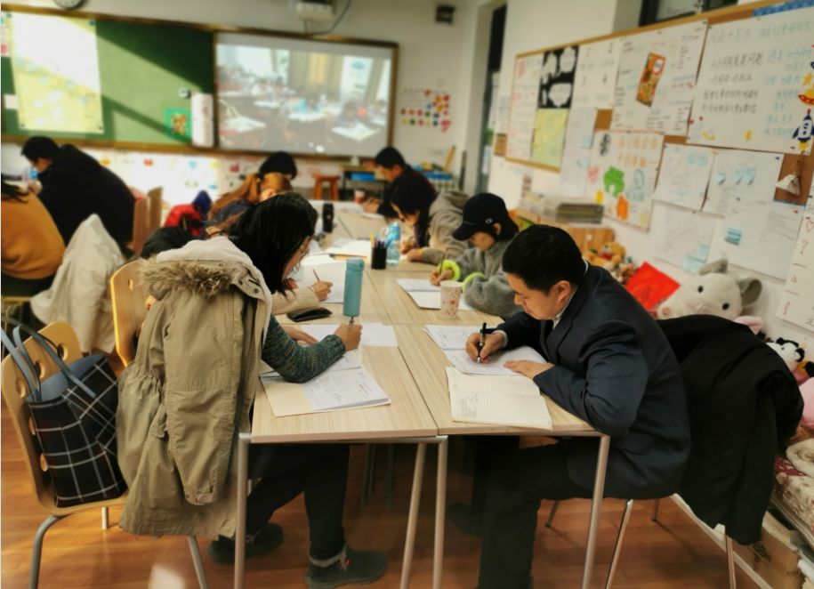 每个学期末,一土学校都会开展SLC(学生主导的家长会),由学生自己向爸爸妈妈讲解自己一学期各个学科的所学所获。在今年的SLC上,“小土豆”们再次成为主角,让家长考试,由他们判卷、面试家长如何解决孩子之间的冲突、让家长观战他们的语文辩论。可谓孩子内化了知识,家长更懂了孩子。图为四年级的家长在SLC上认真“考试”。
