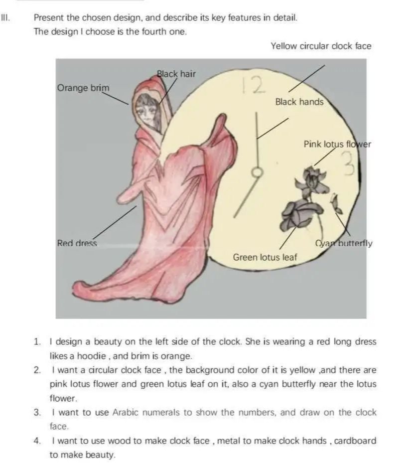 因为第一次接触设计课,再加上完全英语,女儿好几次课下来都云里雾里,感觉都要哭了。过了好久,在老师的帮助下才慢慢整明白,整个一学期就是要设计制作一个钟,课程分四阶段:先是了解钟,构思自己的钟,制做钟,最后是反思。每一个阶段,都有一张学习单,需要在持续学习的过程中,思考并想办法解决四个问题。第一次做学习单,我瞟了一眼,一张纸,四个问题,都不长。放学回来就开始,除了吃饭,其他时间也在电脑上趴着,干了四五个小时,都临近晚上10点了。我有点急了,需要那么久吗?简单答下赶紧睡觉!她告诉我deadline是晚上11点,“我还剩一个问题,又不是完成任务,做完就完,再多查一些多写一点,评分也许会高些哦。”正说着,只听她一声惊呼“天哪”!只见她一下瘫坐在椅子上,嚎啕大哭。我奔过去一看,原来电脑故障,刚做的学习单没保存好,全没了,再打开,只剩下之前的四个问题和空白。很明显她快要崩溃了,我让她哭了几分钟,跟她讲了曾经我也碰到过类似的情况,她一边哭一边问当时我是怎么处理的。我和她商量,两个选择:要么给老师留言,说明原因明天再提交;要么,快速把刚刚的答案凭记忆完善上去,先按时提交,明天再完善一版,重新提交。她选择了后者,一边抹眼泪,一边快速地在电脑上敲。我深刻地记得,赶在最后几分钟完成了提交。第一次成绩下来了,只有4分(满分8分),我还觉得挺遗憾的,她反过来安慰我,“幸好这只是第一版草稿,我再研究下老师给的参考分数和反馈意见,再修正,下一次肯定更好!”是的,第二次,第三次,再后来,果然越来越好。突如其来的问题并不可怕,勇敢面对,重新再来,一切都还有机会。