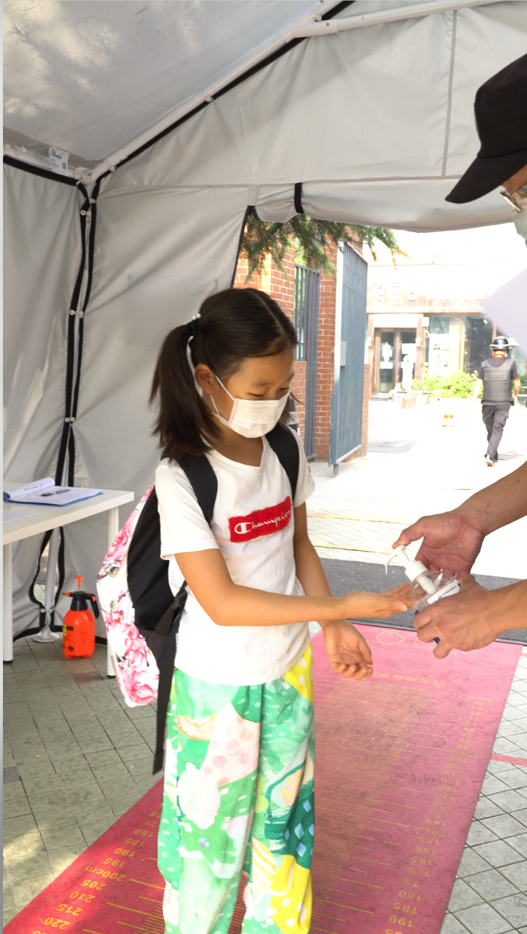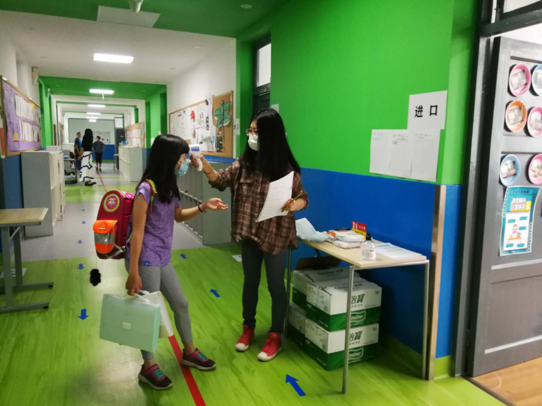 进班前两次测量体温、上交前两周的体温日常记录表、进门用免洗洗手液洗手,孩子和老师们配合地天衣无缝,提前十分钟平稳有序地完成全部学生的入校工作。就像一个“小土豆”在路上和妈妈说的,“这个假期真是从冬天放到了夏天”。“小神兽”们回笼,家长们总算松了一口气,但最开心的,肯定还是孩子。平日习惯赖床的孩子们,有的早上5点就醒了,兴奋地睡不着。
