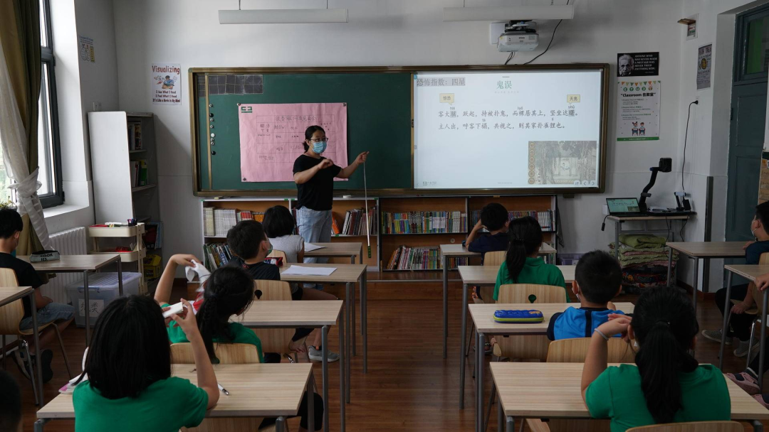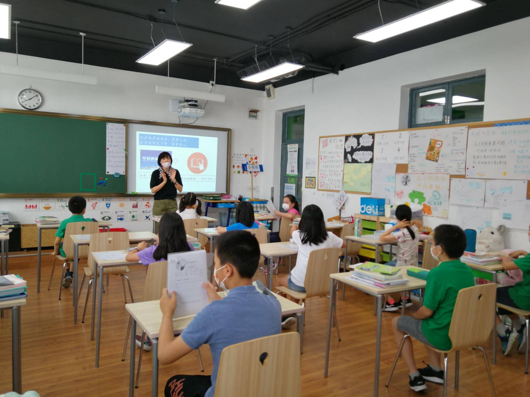 在四年级银杏班,老师们接着线上课的节奏,和孩子们开始“小古文”的学习;而在另一个四年级小荷班,老师继续和孩子们关注新闻,在早间新闻三分钟”时间里,聊着5月27日中国八名科考队成员珠峰登顶的新闻。真可谓“风声雨声读书声、声声入耳,家事国事天下事,事事关心。“