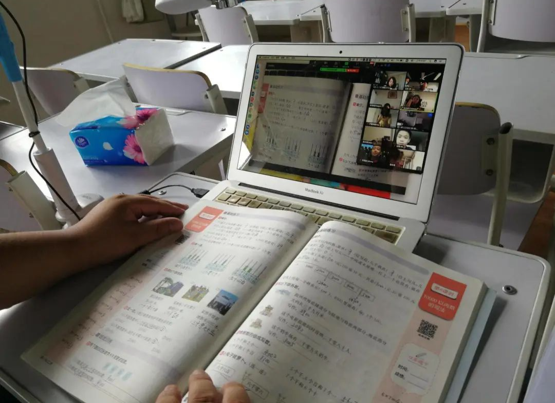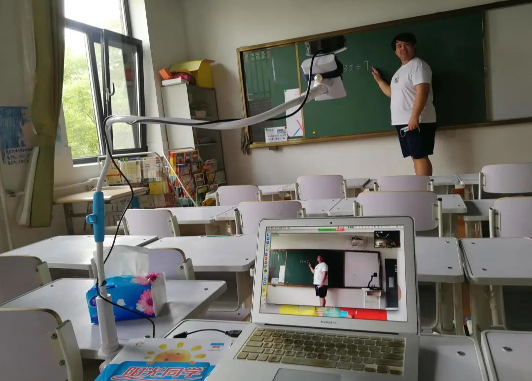 而对于需跨年级教学的老师而言,则是把线上课的行头设备搬到了学校,线上线下实现无缝切换。没想到,在作业讲评前,二年级“小土豆”们七嘴八舌地问起老师高年级哥哥姐姐开学的“盛况”,线上课堂俨然成了一场“答小土豆记者问”。