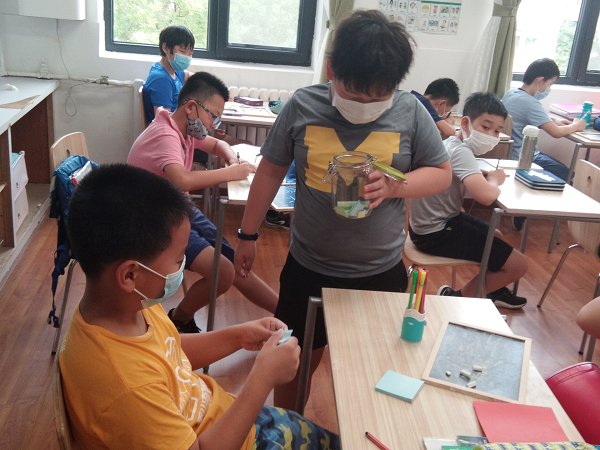 值得一提的是,在银杏班第一天复课的班会上,孩子们还重点讨论了由他们自己发起的公益项目的进展和落地细节,准备用自己的行动,来支持一所在疫情中面临困境的幼儿园,孩子们将这个行动命名为“银杏联盟九九公益行动“,不仅会通过“地摊儿”模式义卖自己的艺术作品,还将发挥自己解锁的新技能,用ZOOM面向全校小土豆开设“小土豆开讲了”线上课堂,据说第一期“小土豆开讲了”的主题,就是将Space X送上太空,实现载人航天飞行的马斯克的传奇故事。(更多关于银杏联盟九九公益行动的故事,请继续关注一土教育的官方推送。)开学其实也是一次线上线下的无缝衔接。晨会之后,在孩子们提交完过去四个月的线上学习总结单后,立刻开始了本学期第18周的学习。