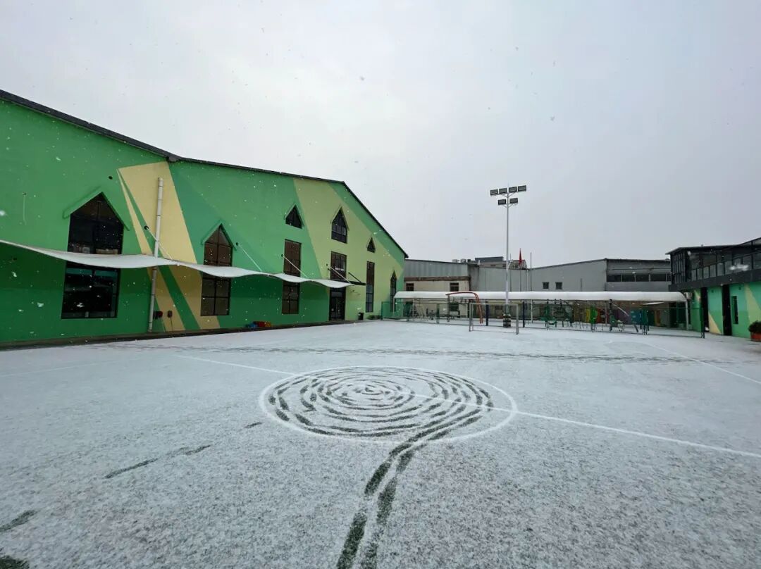 ▲ 2021年初雪,孩子们在校园奔跑玩耍(王皓摄)