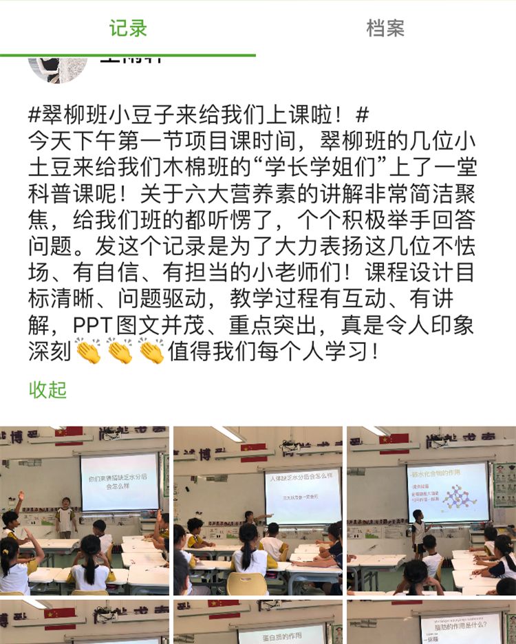 ▲ 三年级班主任在晨犀中记录下这次效果惊艳的小老师课堂。