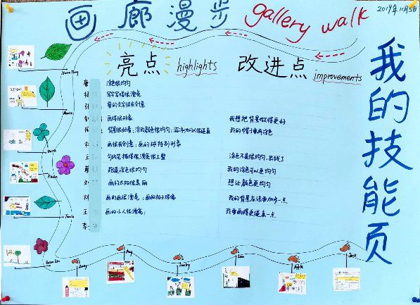 画廊漫步(Gallery Walk)是项目制学习过程中重要的一个环节,将贯穿整个小学阶段。在画廊漫步中,小土豆们通过展览自己的作品、欣赏别人的作品,温暖地给别人亮点和改进点的反馈,同时收到亮点和改进点的反馈建议,更好地迭代或完善自己的作品。在画廊漫步后,你通常可以听到小土豆们这样的说: