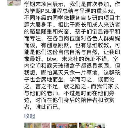 项目展示日结束,朋友圈又不出意外地刷屏了。无论是既有的家长,还是外来的客人,都在感慨孩子们的精彩表现。
