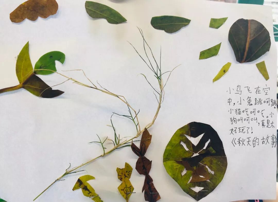 唱诗结束,操场上的一片落叶提醒小土豆们“广州的秋天,已经不知不觉地来临了”。于是,我们顺便采集了落叶,做了一幅幅秋天的画。