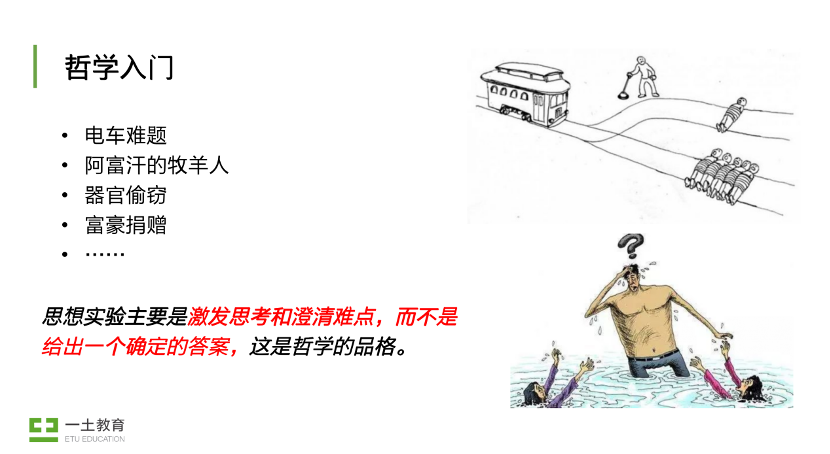 我们会在课上讨论道德困境,做思想实验,了解边沁代表的功利主义和康德代表的道德主义;我们还会讨论幸福的涵义,如果一生都能在“幸福体验机”中度过,那我们就获得幸福了吗;还有约翰·罗尔斯著名的无知之幕,以及阅读《杀死一只知更鸟》,模拟《洞穴奇案》的真实场景,探讨公平与正义。
